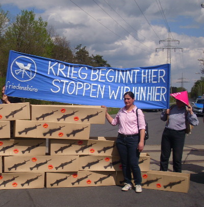 Wir wollen die Fabrik blockieren, weil wir nicht tatenlos dabei zusehen können, wie vor unserer Haustür Waffen gebaut und in alle Welt geliefert werden. Mit unserer Aktion Zivilen Ungehorsams möchten wir in den reibungslosen Betriebsablauf der Waffenschmiede eingreifen. Damit möchten wir ein Zeichen gegen Waffenproduktion, Waffenexporte und Militarismus setzen.
