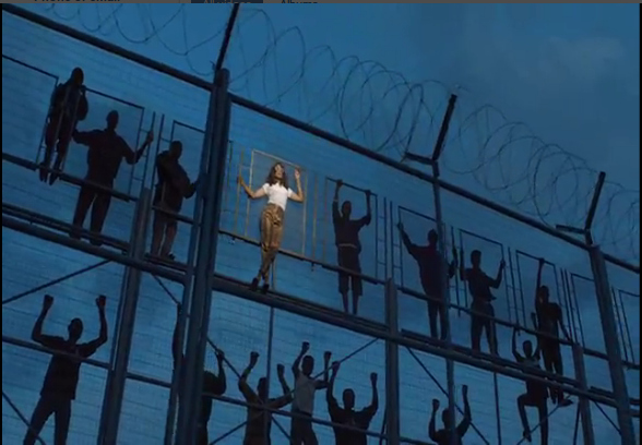 Die Bilder des Video sind gigantische Inszenierung; die Süddeutsche schrieb dazu: "Im Video zu "Borders" steht die 40-Jährige in orangefarbener Latzhose mit verspiegelter Sonnenbrille vor einem mehrstöckigen Grenzzaun, ...