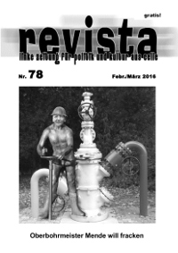 Kommunalpolitisch geht es um den Haushalt der Stadt Celle und die Umwandlung der Abwasserwirtschaft von einem Regie- in einen Eigenbetrieb und darum, welche Risiken damit für eine Privatisierung verbunden sind. Die Laternengespräche finden statt ums Thema "Pariser Klimagipfel". Und da die CZ nicht darüber berichtete, ist ein bisschen untergegangen, dass sich OB Mende in einem Online-Beitrag für die Zeit lobbyistisch für die Celler Erdölzulieferindustrie stark gemacht hat; er will den Weg freiräumen fürs Fracken - genau das will in einem interessanten Positionspapier der Kreisverband Die Linke in Celle nicht.