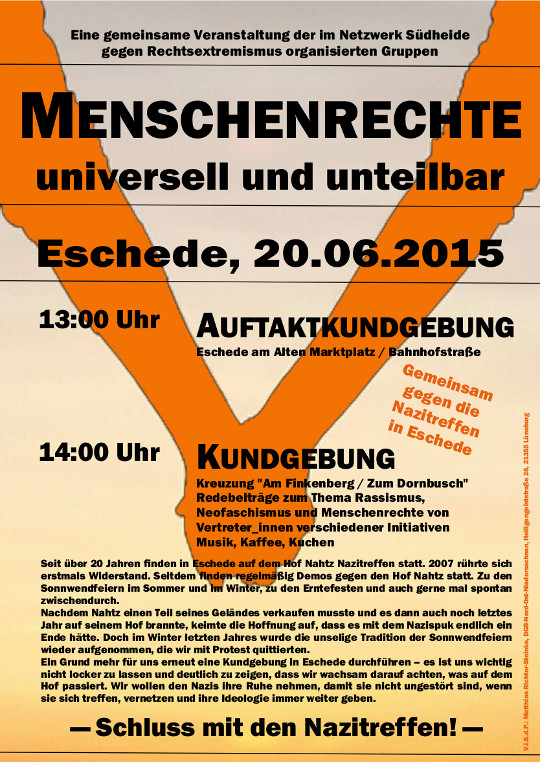 Bei der Kundgebung am 20.6.2015 unter dem Motto: "Menschenrechte - universell und unteilbar / Gemeinsam gegen die Nazitreffen in Eschede" hielt Behiye Uca (Die Linke) folgendes Grußwort an die Teilnehmenden: