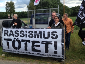 lautet das Motto der Demonstration am 21. Juni 2014 in Eschede. Anlass der Demonstration und Kundgebung war, dass lange Jahre auf dem Hof des NPD'lers Joachim Nahtz Sonnwendfeiern von Neonazis stattfanden. Dieses Jahr stellte das veranstaltenede Bündnis fest: "Inzwischen können wir mit Freude feststellen, dass unser Widerstand erfolgreich ist: seit Sommer 2013 fanden keine großen Nazitreffen mehr in Eschede auf dem Hof von Joachim Nahtz statt. Dennoch wollen wir dieses Jahr wieder eine Kundgebung dort durchführen – es ist uns wichtig nicht locker zu lassen und deutlich zu zeigen, dass wir wachsam darauf achten, was auf dem Hof passiert. Dadurch, dass wir uns nicht direkt Nazis entgegen stellen müssen, nutzen wir diesmal die Gelegenheit, uns mit dem Thema Flüchtlinge und Rassismus in all seinen Facetten zu beschäftigen. Rassismus ist der Kern der Neonazi-Ideologie – aber leider auch in der gesellschaftlichen Mitte zuhause."