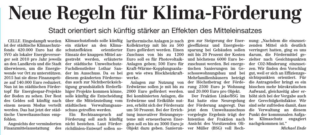 Die Cellesche Zeitung berichtete am 18.07.2015 unter dem Titel